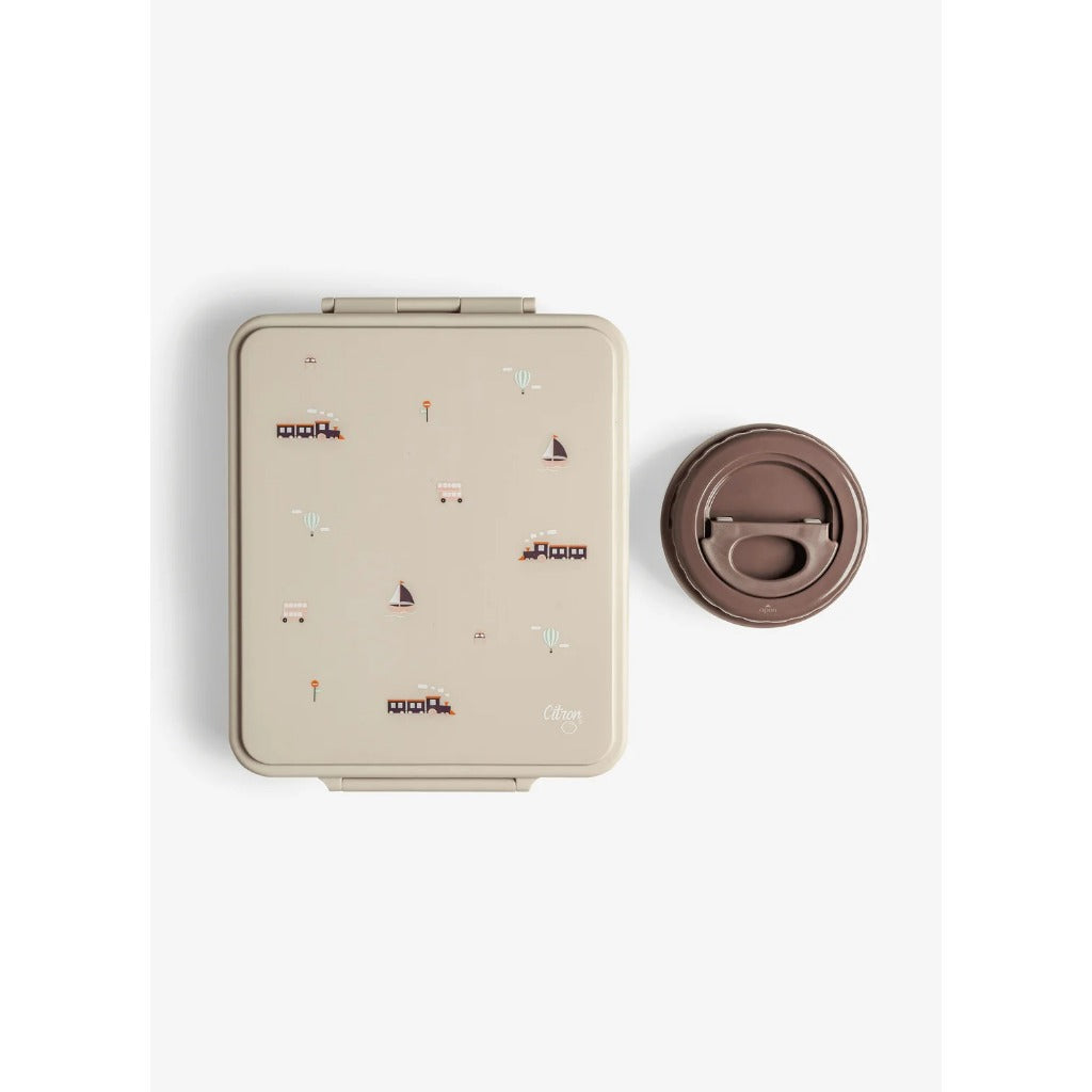 Grand Lunch Box - 4 Compartments - Vehicles + Food Jar