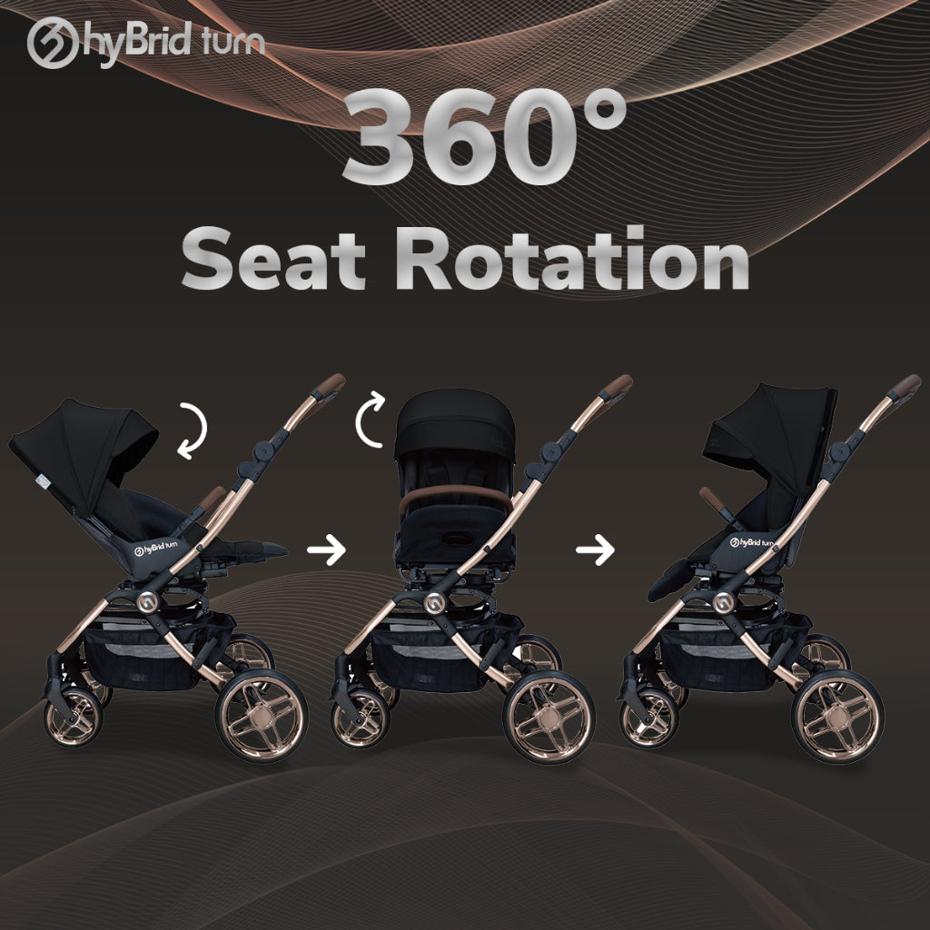 Hybrid Stroller Turn Black Anodized Chassic (Include Raincover + Cup Holder + Front Armrest)